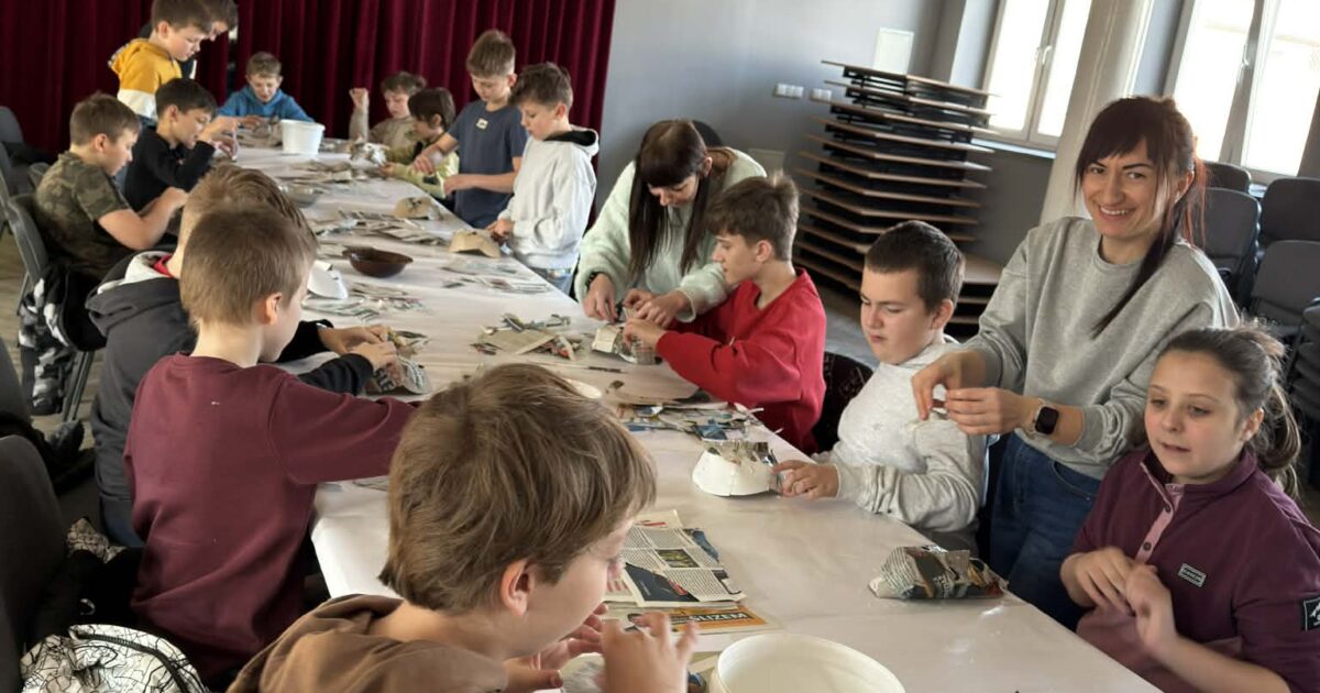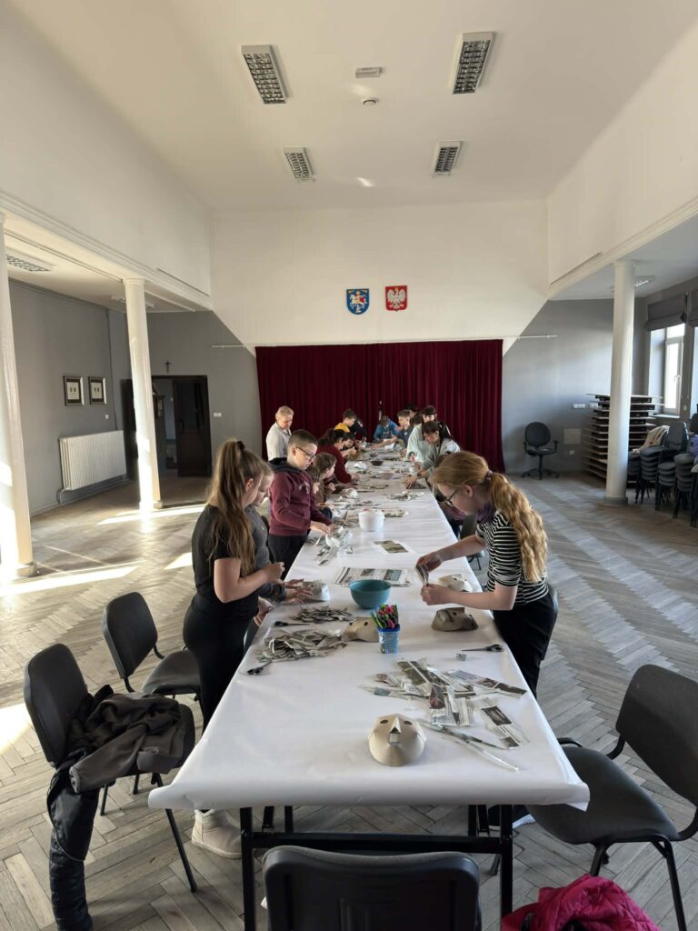 Podczas zajęć dzieci dowiedziały się, jakie znaczenie mają maski w zwyczaju Dziadów Śmiguśnych oraz z jakich materiałów wykonywano je dawniej. Pod okiem prowadzącej, pani Moniki, uczniowie samodzielnie przygotowywali maski, wykorzystując m.in. papier oraz klej z mąki ziemniaczanej.